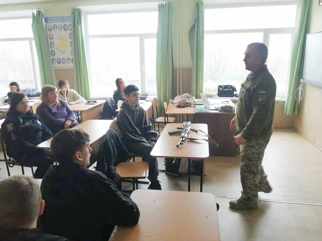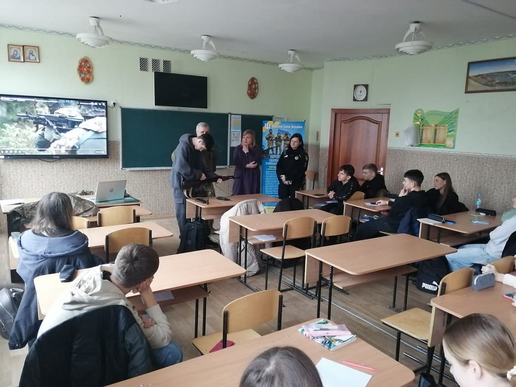 В ході зустрічі учням були продемонстровані зразки стрілецької зброї. Бажаючі змогли потримати зброю в руках та оволодіти технікою її розбирання / збирання.