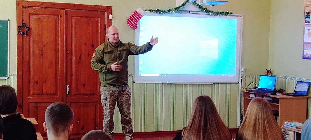 В ході зустрічі учням була надана можливість спробувати себе в якості пілотів на комп’ютерних тренажерах для оволодіння мистецтвом керування дронами. Бажаючі змогли покерувати справжніми дронами типу «Мавік» Мавік (Mavic). Це компактні та потужні квадрокоптери від китайської компанії DJI, відомі своєю портативністю, високою якістю аерофотозйомки, розвиненими технологіями та універсальністю у використанні – від особистих розваг до військової розвідки та інших завдань. Вони оснащені високоякісними камерами, стабілізаторами та просунутими системами навігації.