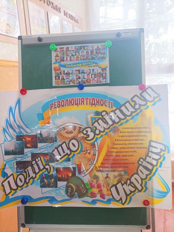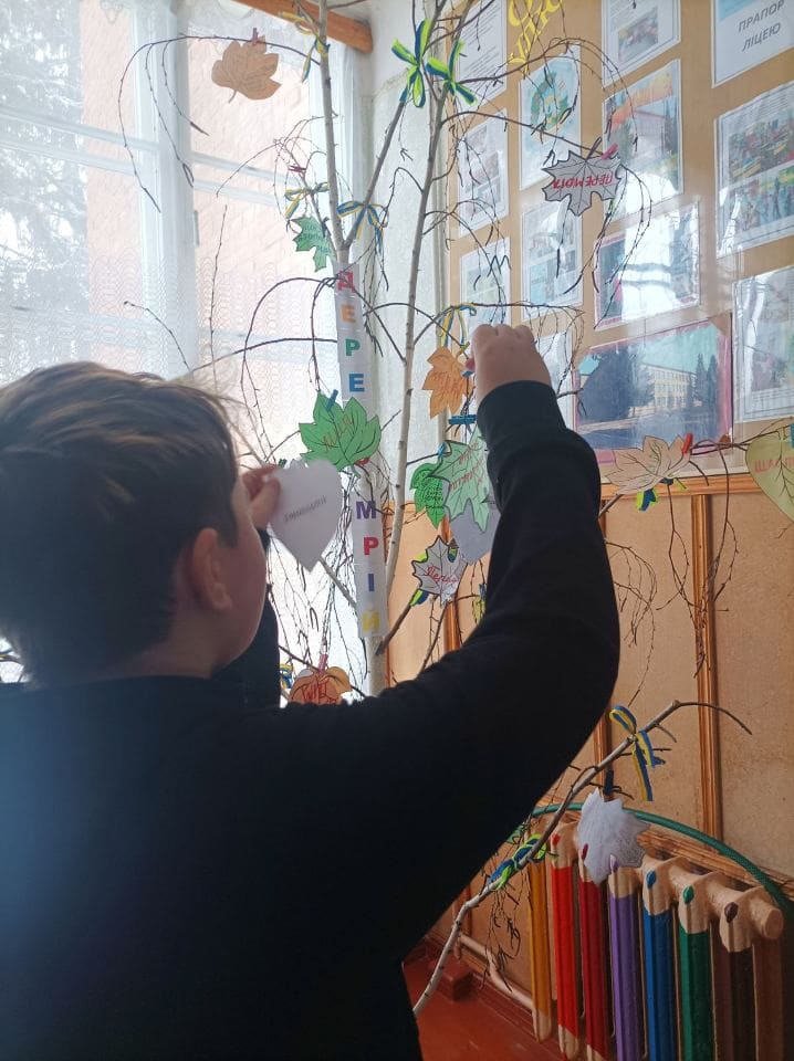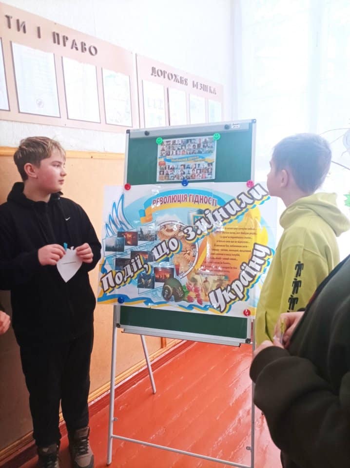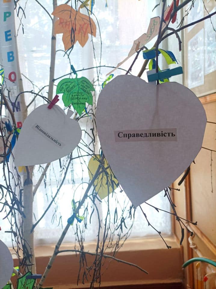 Учні долучилися до символічної акції «Дерево гідності», додавши свої листочки зі словами: «Я обираю гідність. Я обираю відповідальність. Я обираю бути свідомим громадянином своєї країни».